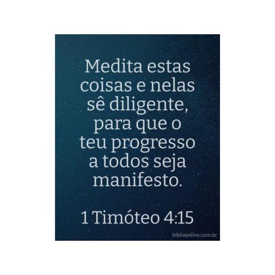 Medita estas coisas e nelas sê diligente, para que o teu progresso a todos seja manifesto. 1 Timóteo 4:15.