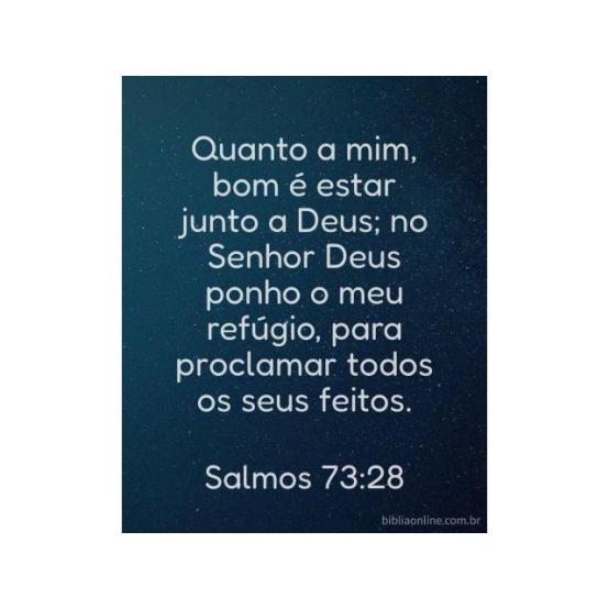 Quanto a mim, bom é estar junto a Deus; no Senhor Deus ponho o meu refúgio, para proclamar todos os Seus feitos. Salmos 73:28.