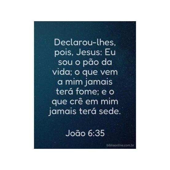 Eu sou o pão da vida; o que vem a Mim jamais terá fome; e o que crê em Mim jamais terá sede. João 6:35.