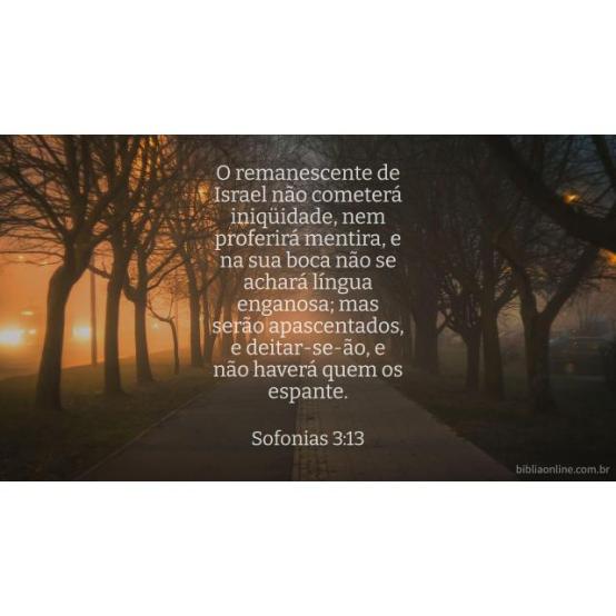 O remanescente de Israel não cometerá iniqüidade, nem proferirá mentira, e na sua boca não se achará língua enganosa; porque serão apascentados, deitar-se-ão, e não haverá quem os espante. Sofonias 3:13.
