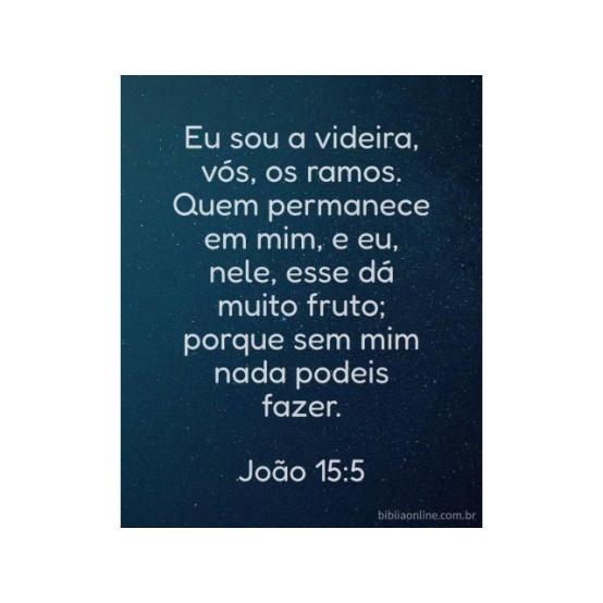 Eu sou a videira, vós, os ramos. Quem permanece em Mim, e Eu, nele, esse dá muito fruto; porque sem Mim nada podeis fazer. João 15:5.