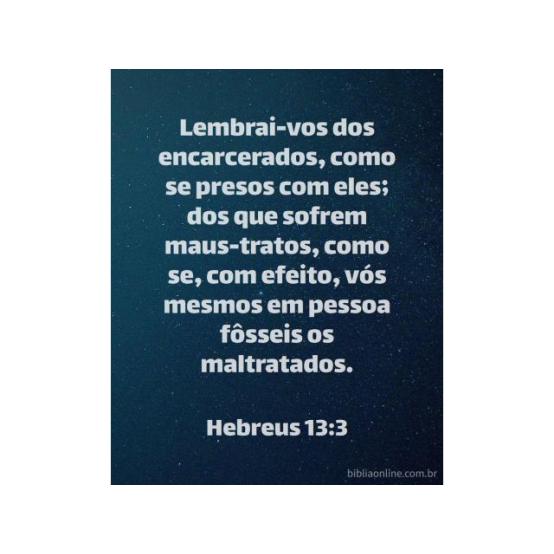 Lembrai-vos dos encarcerados. Hebreus 13:3.