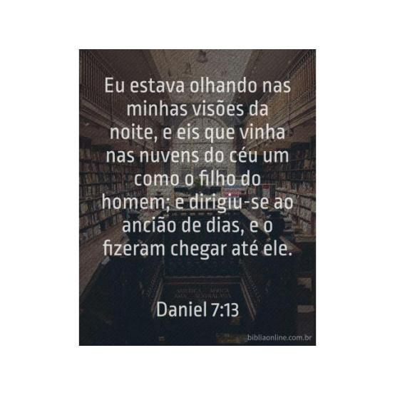 Eu estava olhando nas minhas visões da noite, e eis que vinha nas nuvens do céu um como o Filho do homem; e dirigiu-se ao Ancião de dias, e O fizeram chegar até Ele. Daniel 7:13.