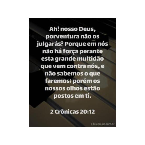 Ah! Deus nosso, porventura, não os julgarás? Porque em nós não há força perante esta grande multidão que vem contra nós, e não sabemos nós o que faremos; porém os nossos olhos estão postos em Ti. 2 Crônicas 20:12.
