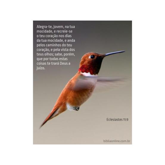 Alegra-te, jovem, na tua mocidade, e alegre-se o teu coração nos dias da tua mocidade, e anda pelos caminhos do teu coração e pela vista dos teus olhos; sabe, porém, que por todas essas coisas te trará Deus a juízo. Eclesiastes 11:9.