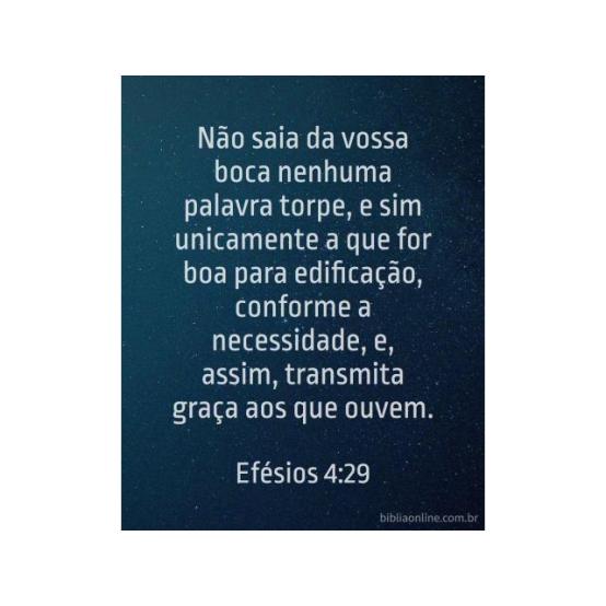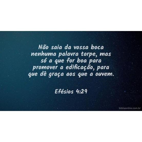 Não saia da vossa boca nenhuma palavra torpe, e sim unicamente a que for boa para edificação, conforme a necessidade, e, assim, transmita graça aos que ouvem. Efésios 4:29.