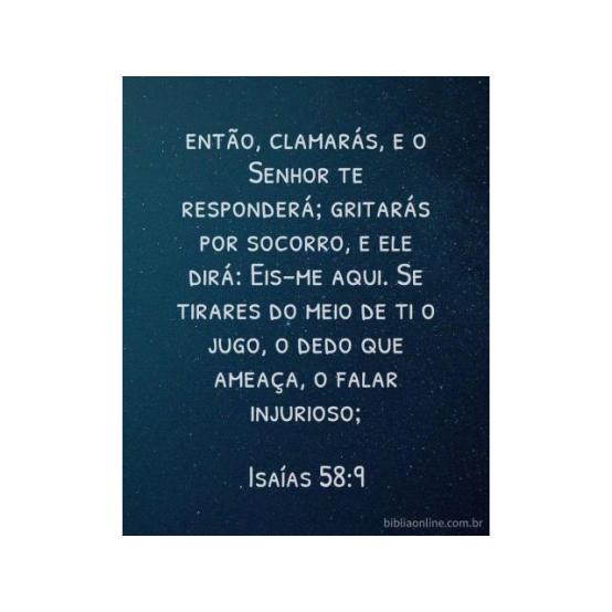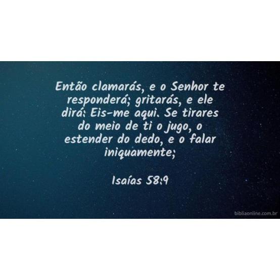Então, clamarás, e o Senhor te responderá; gritarás por socorro, e Ele dirá: Eis-Me aqui. Se tirares do meio de ti o jugo, o dedo que ameaça, o falar injurioso. Isaías 58:9.