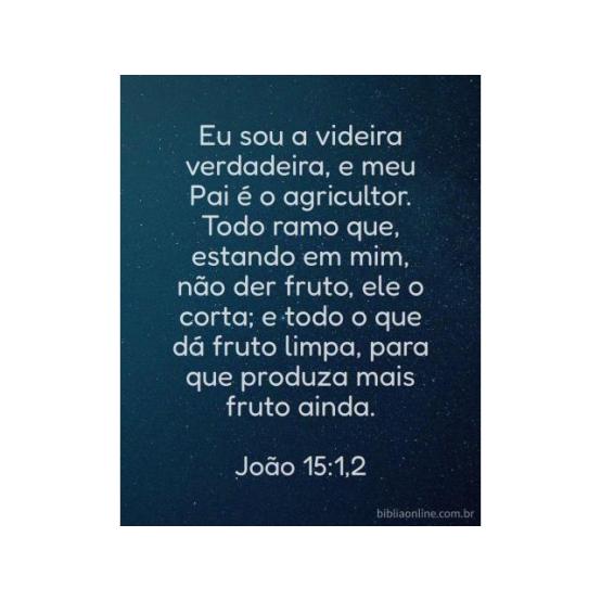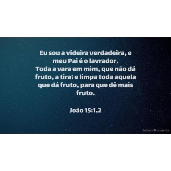 Eu sou a videira verdadeira, e Meu Pai é o agricultor. Todo ramo que, estando em Mim, não der fruto, Ele o corta; e todo o que dá fruto limpa, para que produza mais fruto ainda. João 15:1, 2.