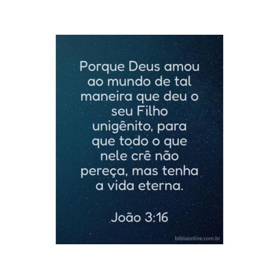 Porque Deus amou ao mundo de tal maneira que deu o Seu Filho Unigênito, para que todo o que nEle crê não pereça, mas tenha a vida eterna. João 3:16.