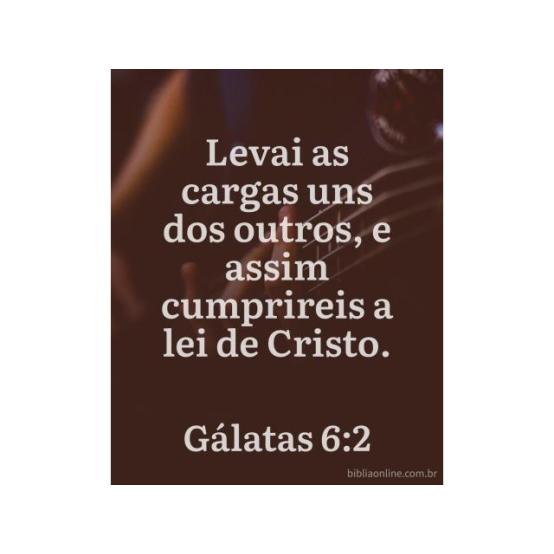 Levai as cargas uns dos outros e assim cumprireis a lei de Cristo. Gálatas 6:2.