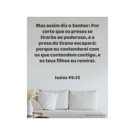 Mas assim diz o Senhor: Por certo que os presos se tirarão ao valente, e a presa do tirano escapará; porque Eu contenderei com os que contendem contigo e os teus filhos Eu remirei. Isaías 49:25.