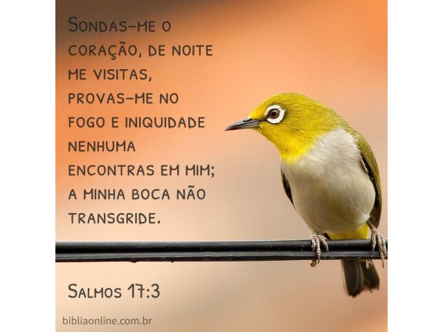 Sondas-me o coração, de noite me visitas, provas-me no fogo e iniqüidade nenhuma encontrarás em mim; a minha boca não transgride. Salmos 17:3.