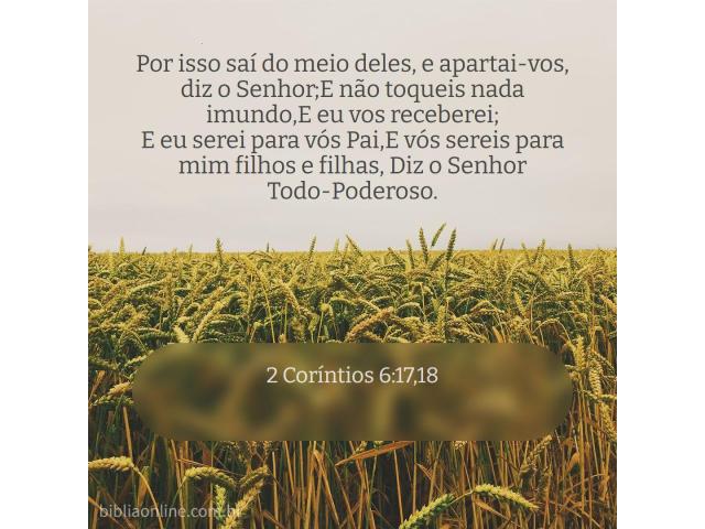 Retirai-vos do meio deles, separai-vos, diz o Senhor; não toqueis em coisas impuras; e Eu vos receberei, serei vosso Pai, e vós sereis para Mim filhos e filhas, diz o Senhor Todo-Poderoso. 2 Coríntios 6:17-18.
