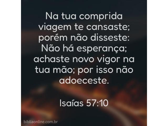 Na tua longa viagem te cansas, mas não dizes: É em vão; achas o que buscas; por isso, não desfaleces. Isaías 57:10.