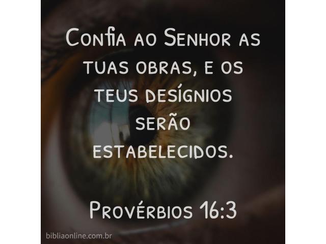 Confia ao Senhor as tuas obras, e os teus desígnios serão estabelecidos. Provérbios 16:3.