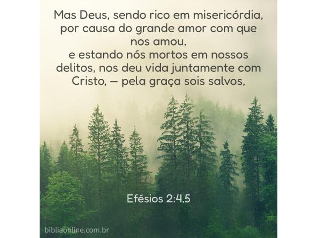 Mas Deus, sendo rico em misericórdia, por causa do grande amor com que nos amou, e estando nós mortos em nossos delitos, nos deu vida juntamente com Cristo. Efésios 2:4, 5.