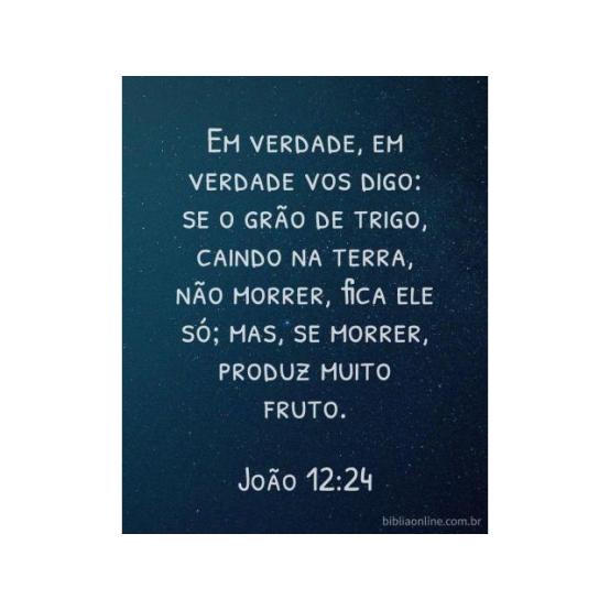 Em verdade, em verdade vos digo: se o grão de trigo, caindo na terra, não morrer, fica ele só; mas, se morrer, produz muito fruto. João 12:24.