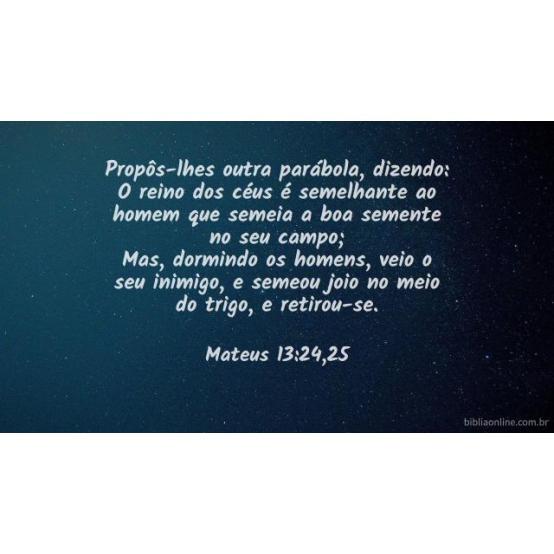 O reino dos Céus é semelhante a um homem que semeou boa semente no seu campo; mas, enquanto os homens dormiam, veio o inimigo dele, semeou o joio no meio do trigo e retirou-se. Mateus 13:24, 25.