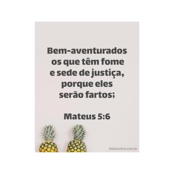 Bem-aventurados os que têm fome e sede de justiça, porque eles serão fartos. Mateus 5:6.