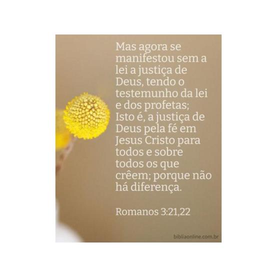 Mas, agora, se manifestou, sem a lei, a justiça de Deus, tendo o testemunho da lei e dos profetas, isto é, a justiça de Deus pela fé em Jesus Cristo para todos e sobre todos os que crêem; porque não há diferença. Romanos 3:21, 22.