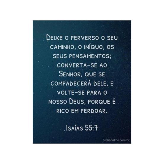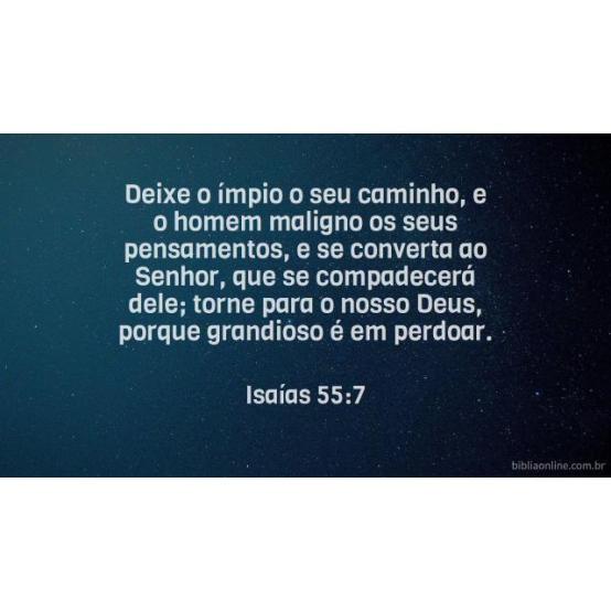 Deixe o perverso o seu caminho, o iníquo, os seus pensamentos; converta-se ao Senhor, que Se compadecerá dele, e volte-se para o nosso Deus, porque é rico em perdoar. Isaías 55:7.