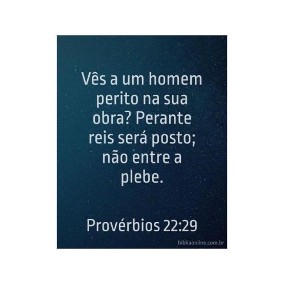 Vês a um homem perito na sua obra? Perante reis será posto; e não entre a plebe. Provérbios 22:29.