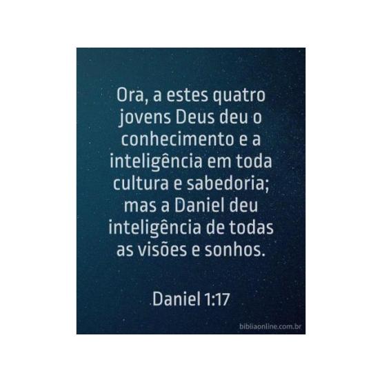 Ora, a estes quatro jovens Deus deu o conhecimento e a inteligência em toda cultura e sabedoria; mas a Daniel deu inteligência de todas as visões e sonhos. Daniel 1:17.