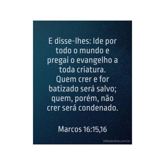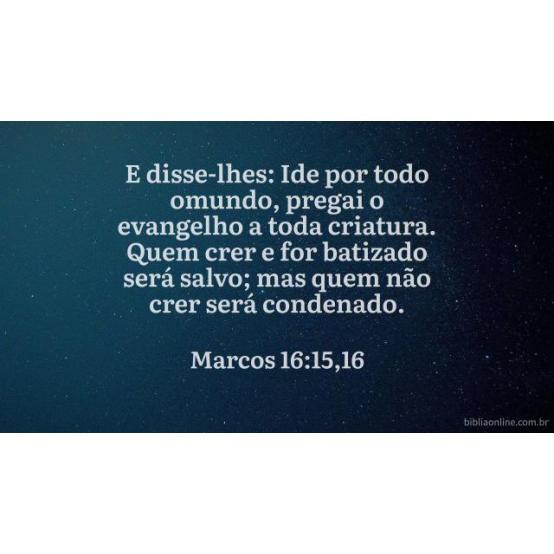 Ide por todo o mundo e pregai o evangelho a toda criatura. Quem crer e for batizado será salvo. Marcos 16:15, 16.