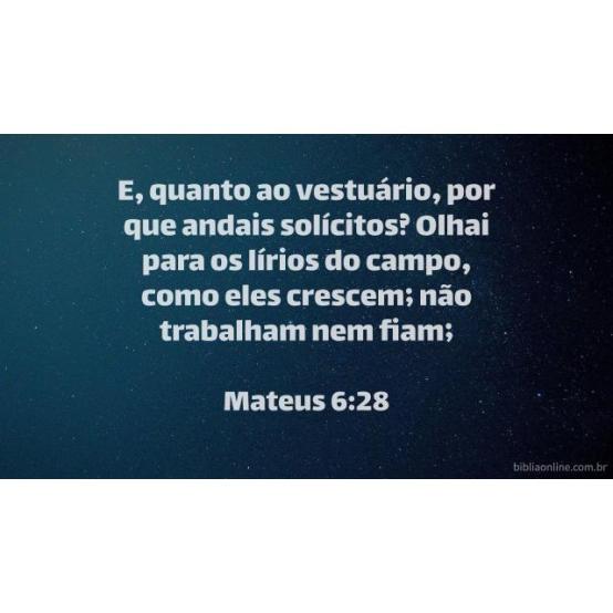 E por que andais ansiosos quanto ao vestuário? Considerai como crescem os lírios do campo: eles não trabalham, nem fiam. Mateus 6:28.